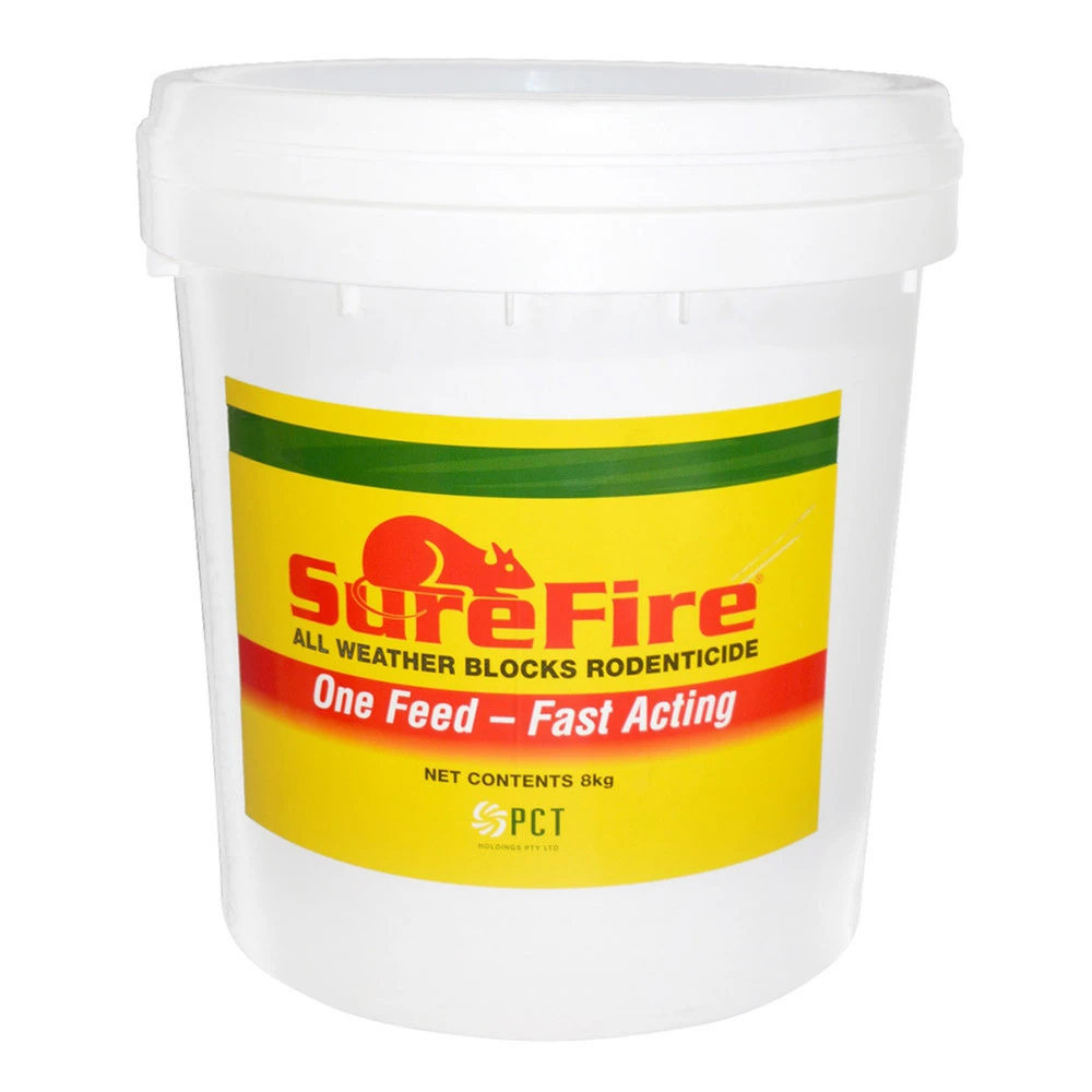 Our Surefire All Weather Rodent Blocks are ready-to-use, wax-based block baits that can be used in dry and damp situations. They are designed to effectively control rodents in and around industrial, commercial, agricultural, and domestic buildings, as well as the exterior and interior of various structures. Boasting a one-feed, fast-acting formula, these rodent control blocks can control species resistant to warfarin, ensuring maximum effectiveness in eradicating rodent problems.